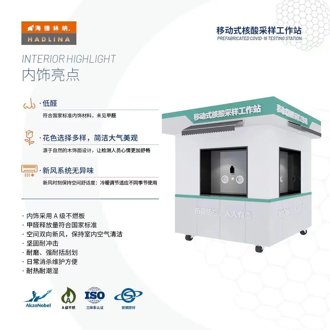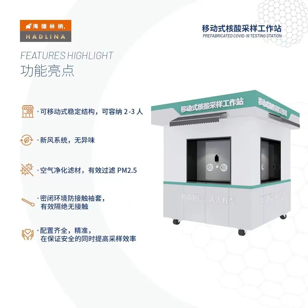 這意味著,在堅持“動態清零”政策下,中國的大城市將實現“常態化核酸檢測”。海德林納?為了更好的配合城市完成“常態化核酸檢測”,保護一線核酸采樣人員的安全和提供一個舒適的工作環境,設計研發出移動式核酸采樣工作站,為疫情防控提供了有力的保障。
