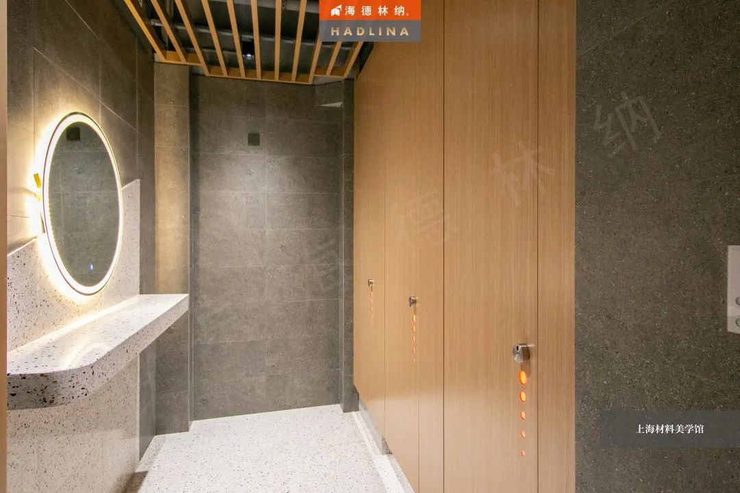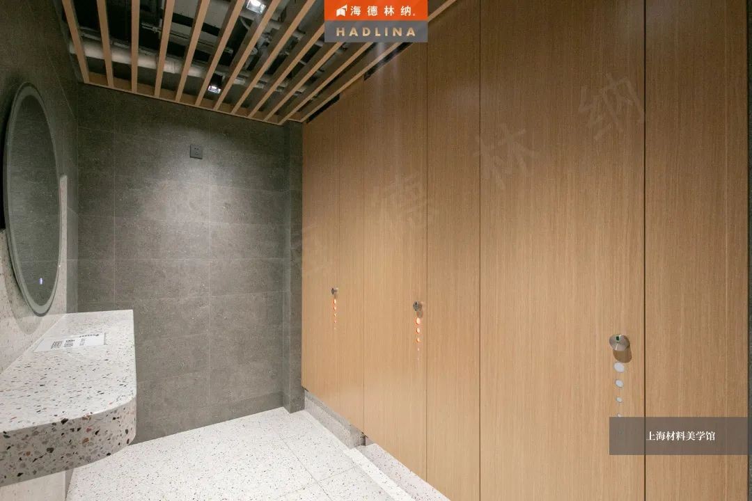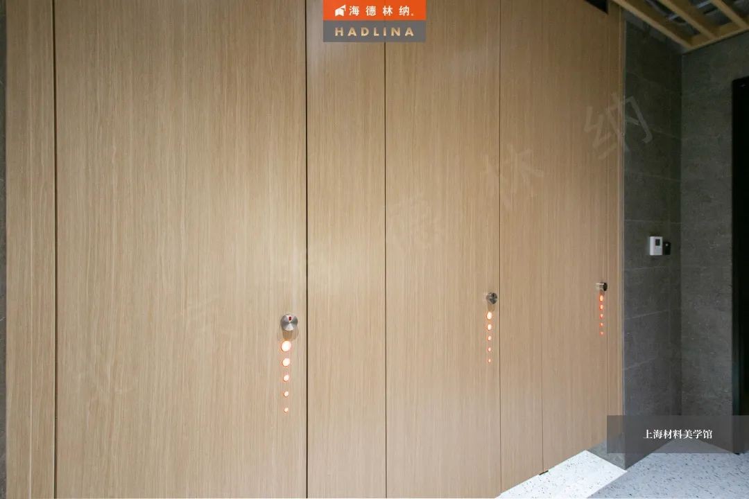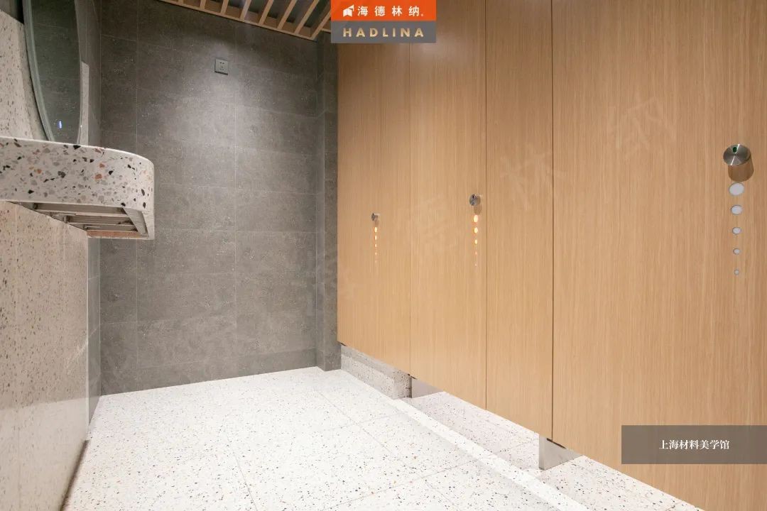 海德林納?遵循著“集中高品質(zhì),彰顯高價(jià)值”的企業(yè)理念,將產(chǎn)品與藝術(shù)結(jié)合,不斷創(chuàng)新。上海材料美學(xué)館衛(wèi)生間隔斷系統(tǒng)由海德林納?承建,該項(xiàng)目采用海德林納26mm厚度的隔斷板材,將空間合理劃分,線條流暢,風(fēng)格簡(jiǎn)約,線與面完美結(jié)合,美觀大氣,充斥著藝術(shù)之美,與上海材料美學(xué)館的理念相得益彰。