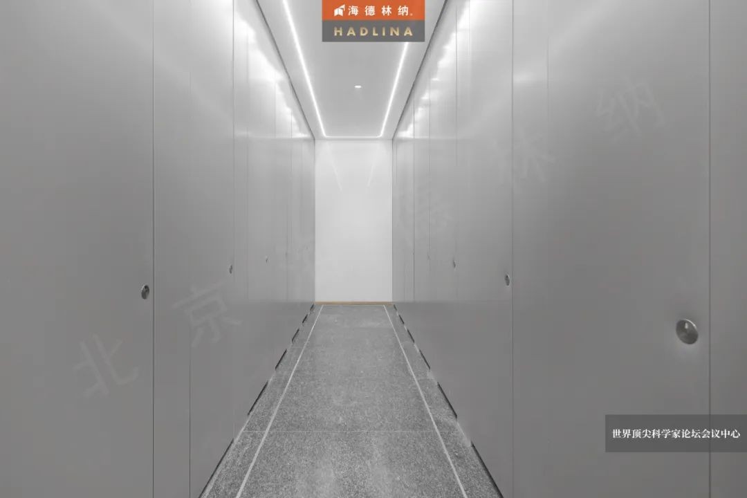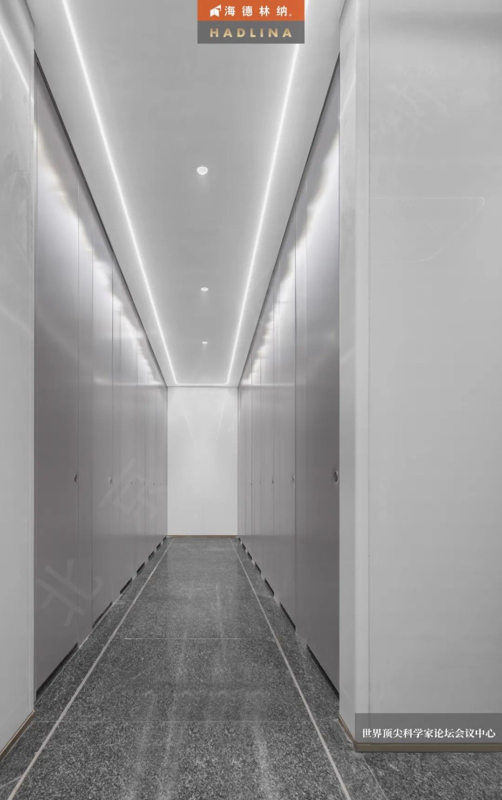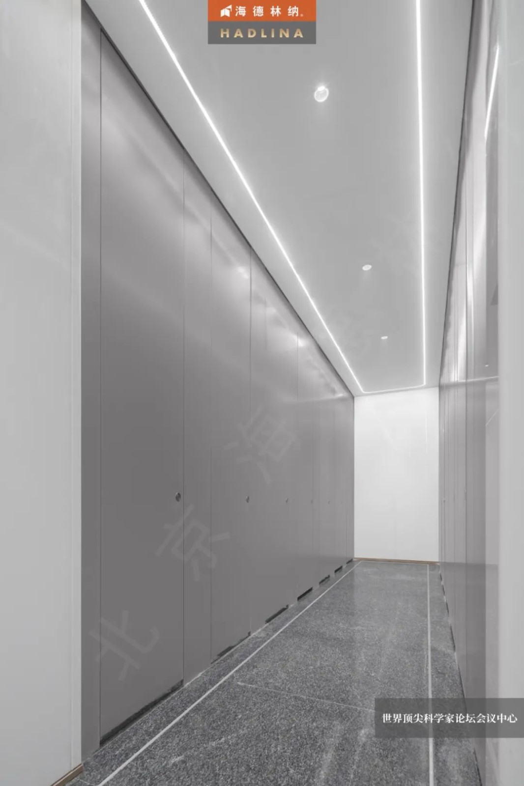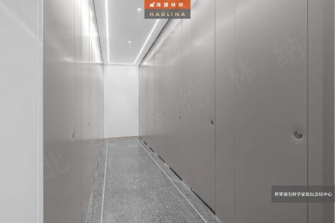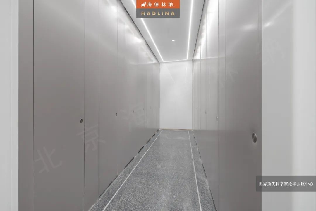 世界頂尖科學(xué)家論壇會(huì)議中心公共衛(wèi)生空間項(xiàng)目由海德林納?承建。海德林納?設(shè)計(jì)團(tuán)隊(duì)通過對(duì)項(xiàng)目定位、項(xiàng)目設(shè)計(jì)理念進(jìn)行分析,選擇使用海德林納?天地式金屬隔斷,整體設(shè)計(jì)采用平開合頁,以銀灰配色,搭配雙企口邊型。整體設(shè)計(jì)風(fēng)格簡潔不失大氣,現(xiàn)代感十足。