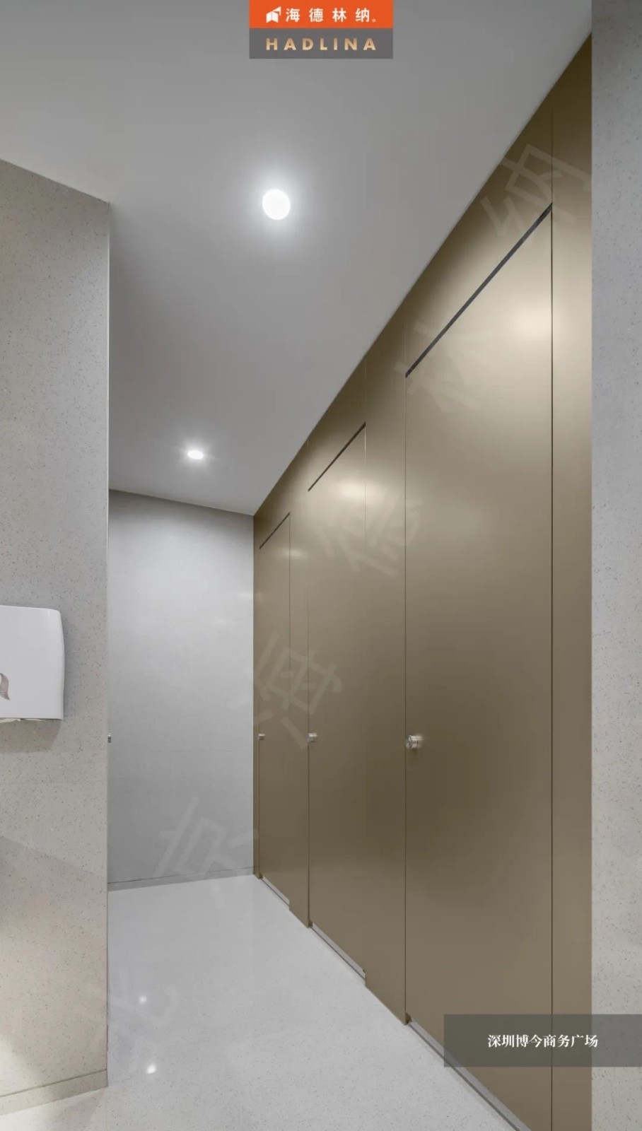 海德林納?為深圳博今商務(wù)廣場設(shè)計(jì)的衛(wèi)生間隔斷系統(tǒng),在材料特性、顏色選擇以及與使用空間的完美結(jié)合方面脫穎而出。不僅注重產(chǎn)品的視覺效果和耐用性,還提供了舒適、安全的使用體驗(yàn)。
