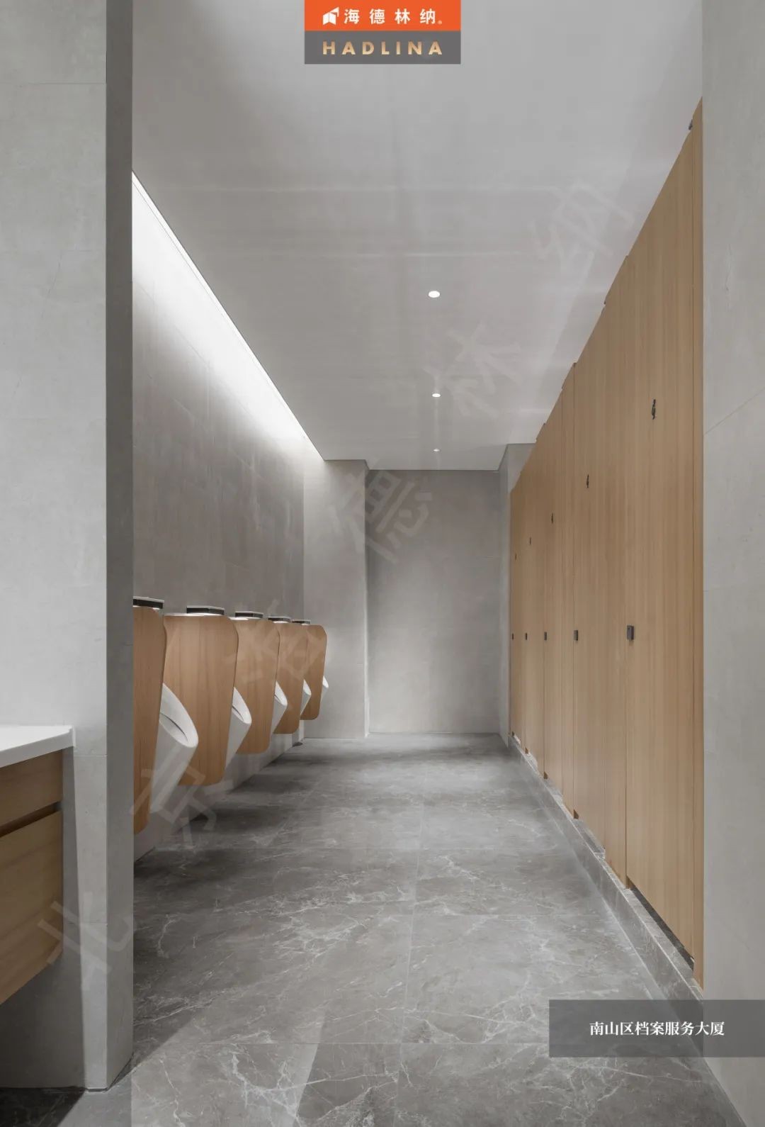 深圳檔案大廈衛生間隔斷采用原木色花紋,展現自然的魅力,恰到好處地融入空間,為整體增色不少。細膩的木紋質感,為使用者帶來溫暖與放松。在這溫暖的氛圍中,人們仿佛置身于自然之中,感受大自然的饋贈。