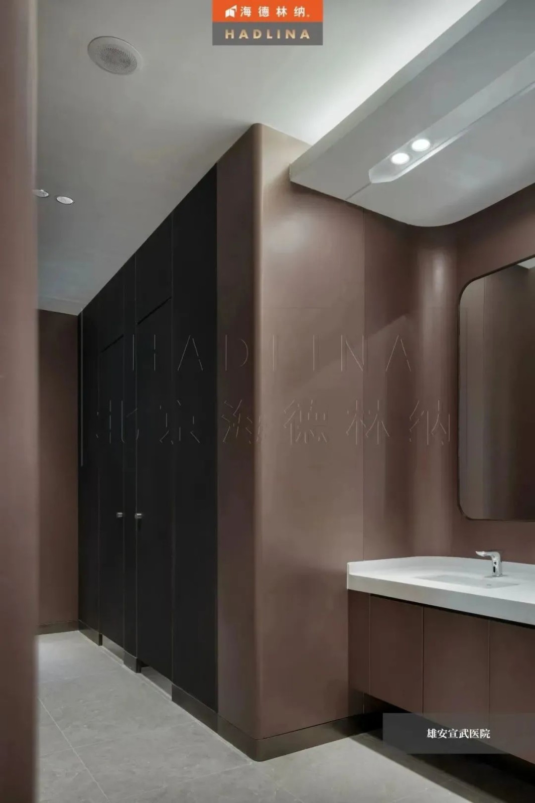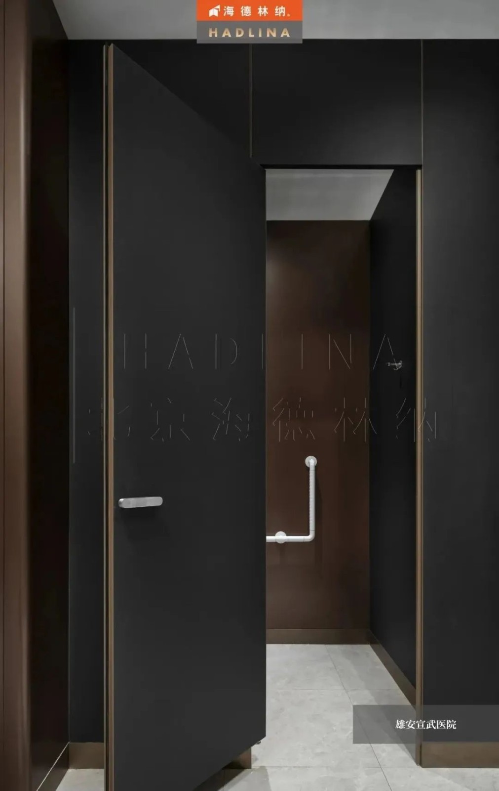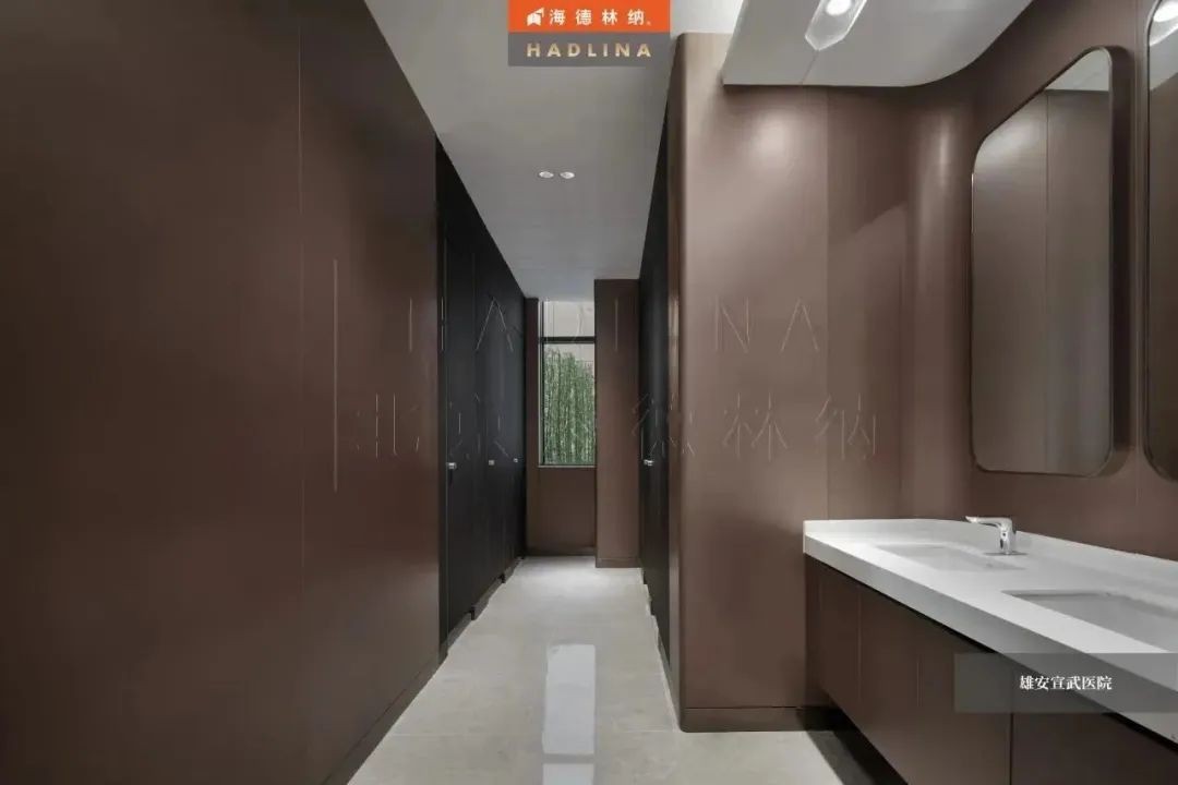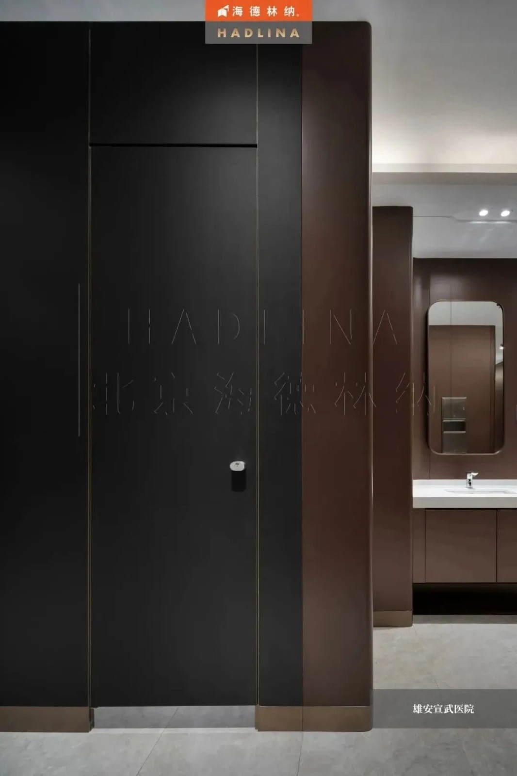 在雄安宣武醫(yī)院項(xiàng)目中,海德林納?使用HD-16隔斷產(chǎn)品,為醫(yī)院衛(wèi)生間帶來了一種時(shí)尚和奢華的現(xiàn)代感。這款隔斷產(chǎn)品以其獨(dú)特的金棕革顏色,以及特殊工藝中的皮革紋理表面,內(nèi)襯的鋁蜂窩,為醫(yī)院衛(wèi)生間注入了一種令人印象深刻的感覺。