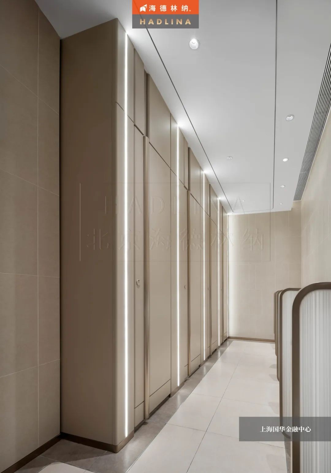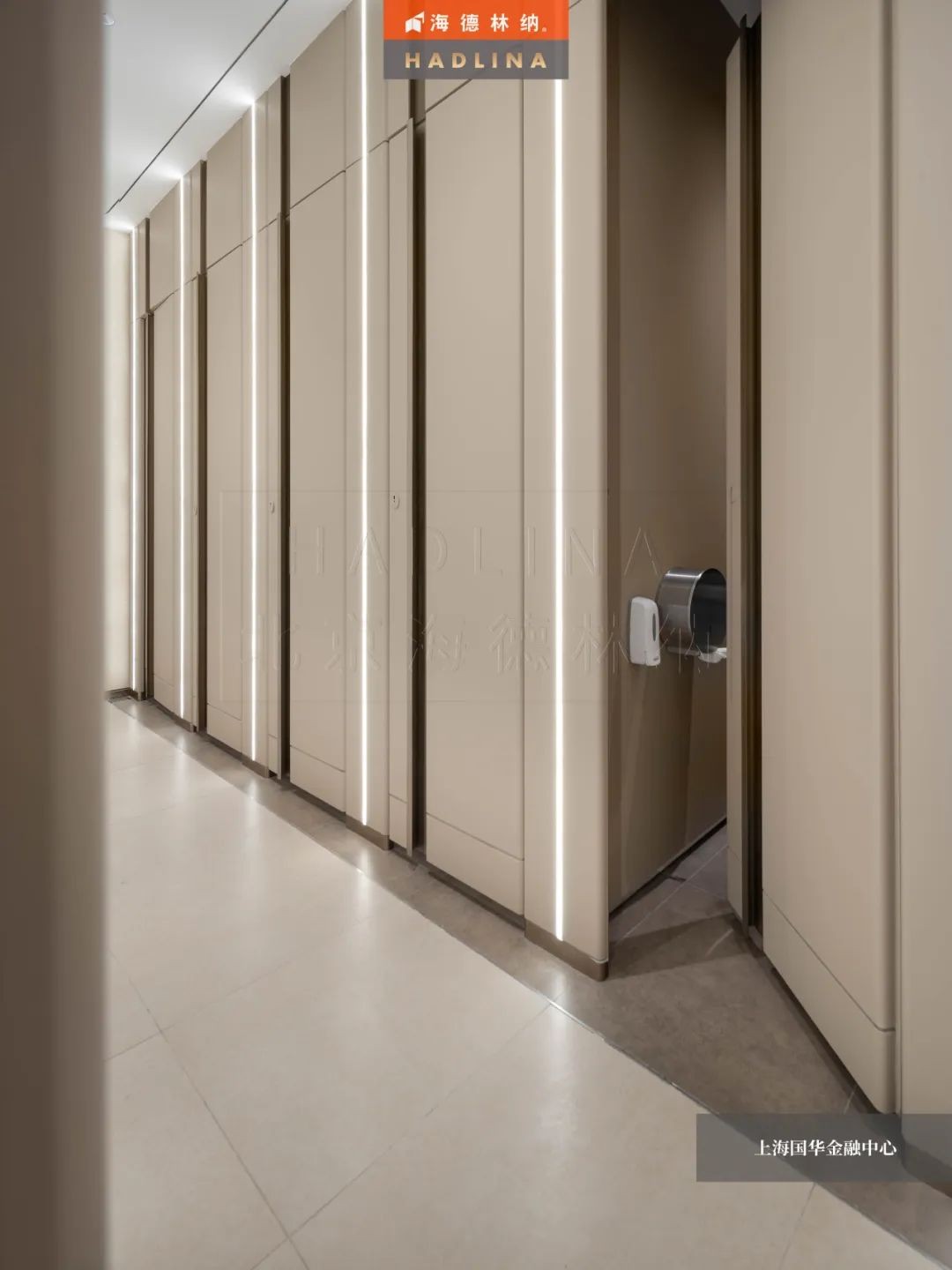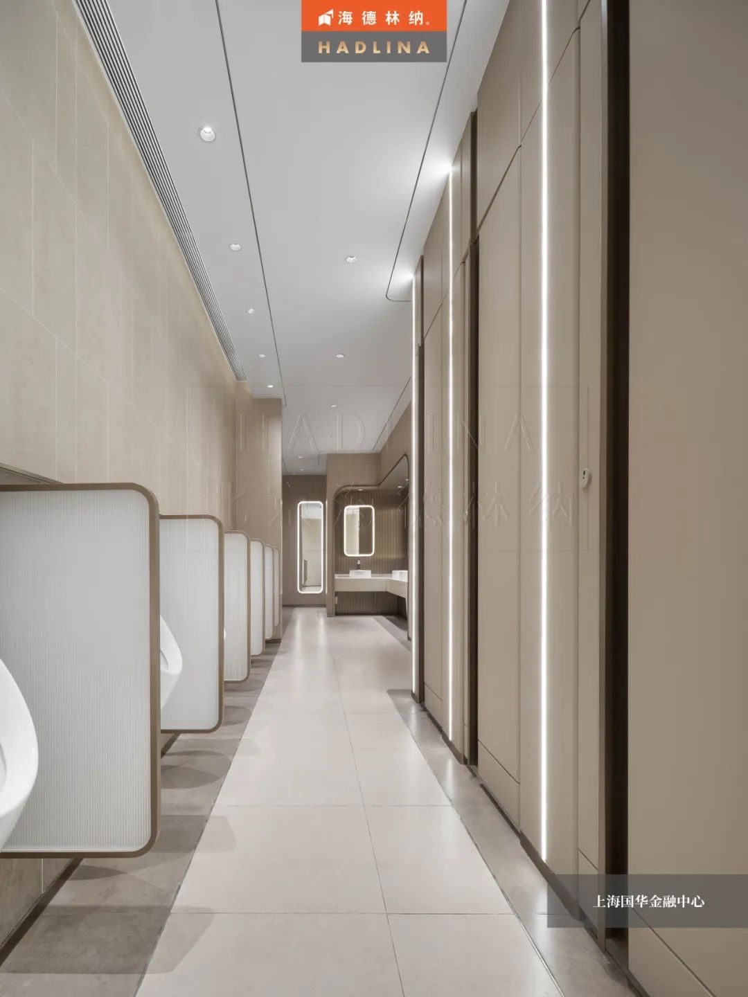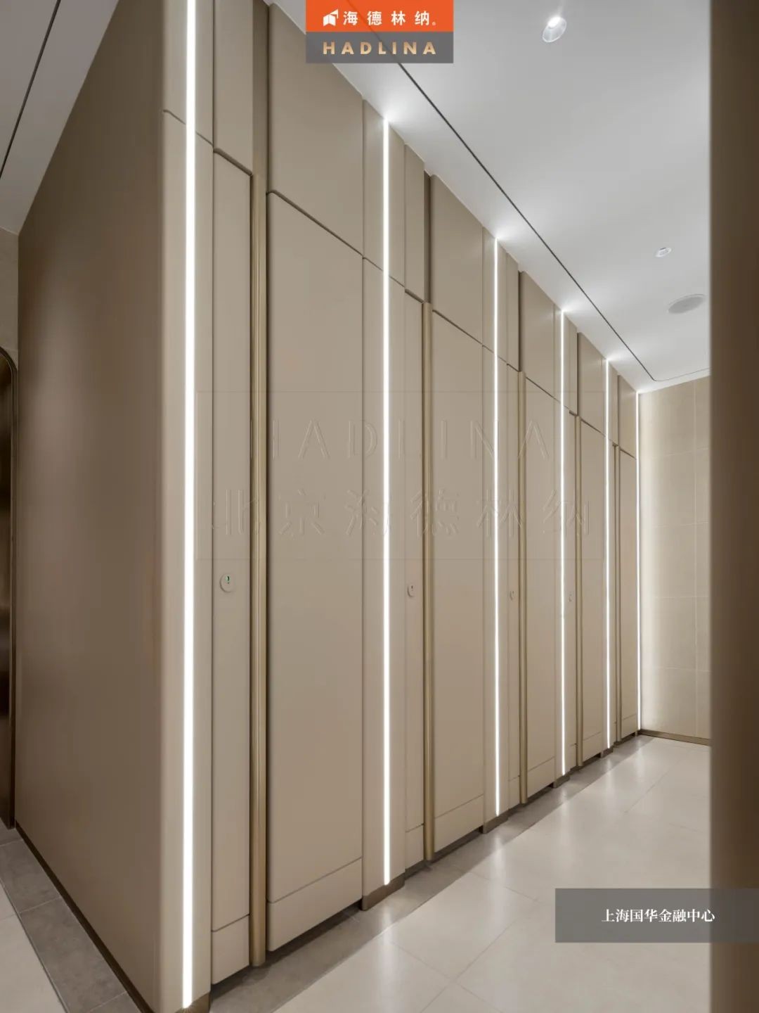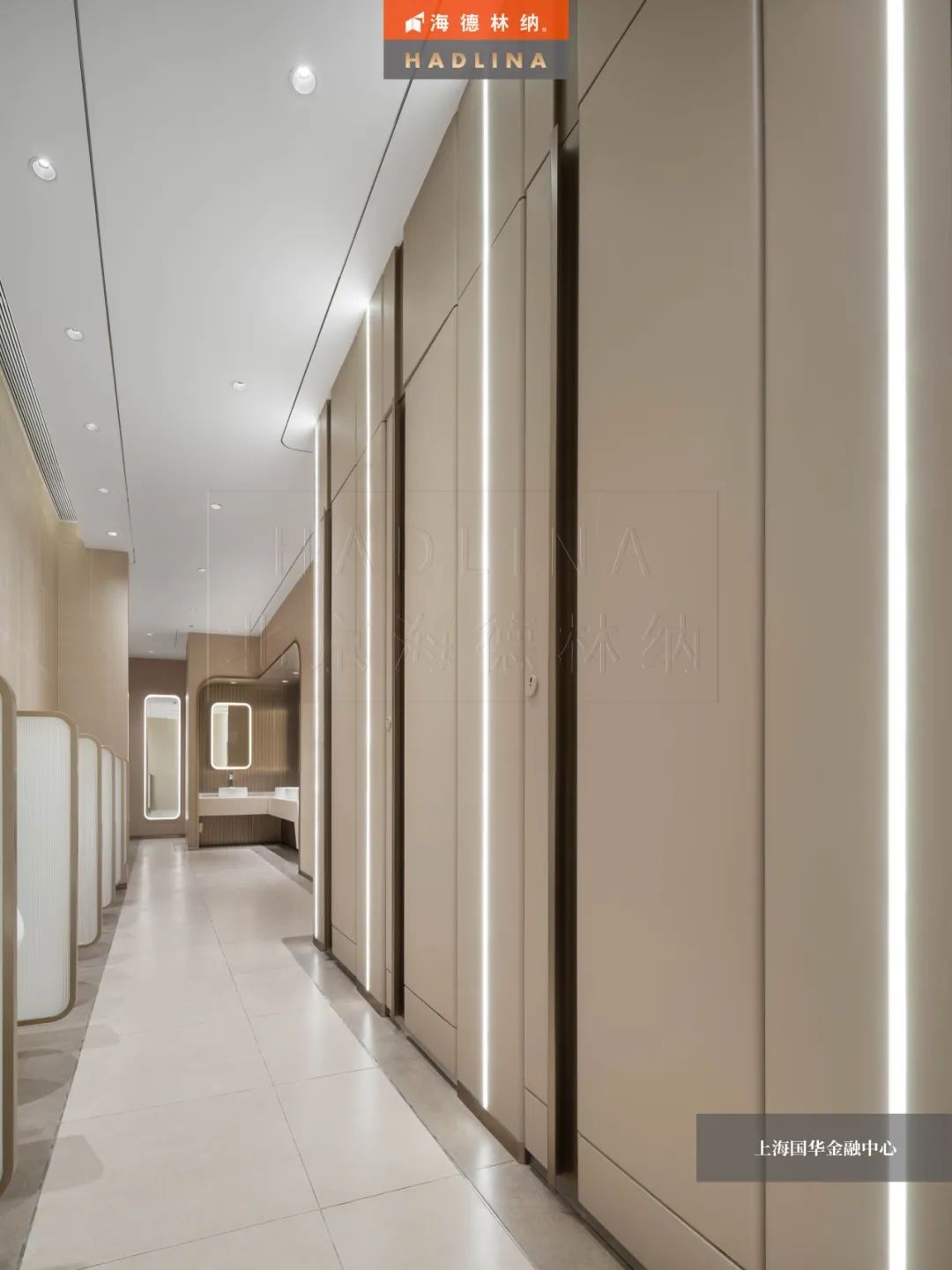 上海國(guó)華金融中心選取海德林納?天地式金屬衛(wèi)生間隔斷,以其26mm的板材厚度,不僅穩(wěn)固了結(jié)構(gòu)的堅(jiān)實(shí),更在細(xì)節(jié)處彰顯了設(shè)計(jì)的匠心獨(dú)運(yùn)。香檳色的選擇,如同晨曦中的第一縷陽(yáng)光,溫暖而不失高雅,為公共衛(wèi)生空間帶來(lái)了一抹溫馨與舒適。